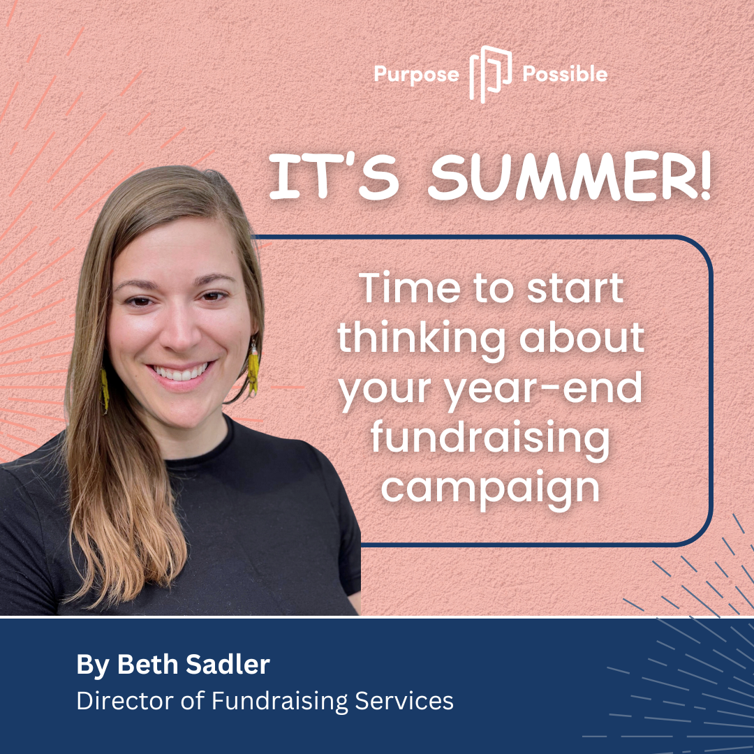 Most of the organizations we work with at Purpose Possible have capacity to run just one or two campaigns per year, so odds are, your organization is running some sort of year-end fundraising campaign utilizing direct mail, peer-to-peer fundraising, or email blasts to your donor lists. Rather than trying to fit in the recommended six (yes, at least six!) donor asks per year, it’s critical that organizations with limited capacity focus on the quality of campaigns over quantity, with well-planned, intentional fundraising campaigns.